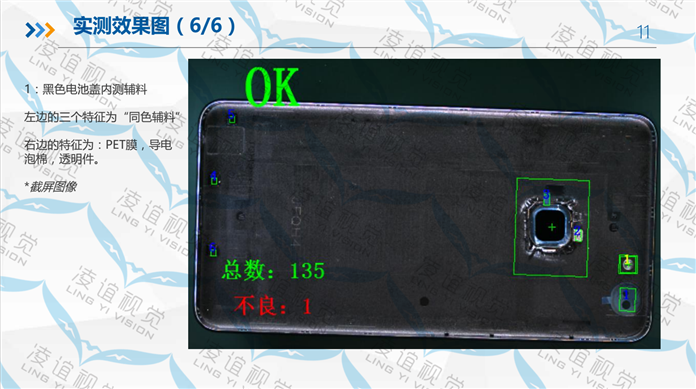 手機殼輔料檢測設備采用先進的視覺影像識別算法和架構,設備放置在流水線上實時在線檢測,精度高,識別效率高,帶聲光報警及自動剔除。可以識別手機殼件上的輔料漏裝,可識別黑色殼體上黑色泡棉的有無、零部件漏裝,倒裝,錯裝,堵孔等加工缺陷。能有效提高出貨品質及減少客訴。應用于手機殼體加工、結構組件、CNC加工、手機殼注塑、手機整機加工、電子產品加工行業等。